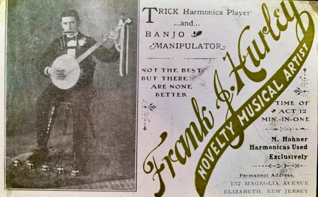 The above postcard—one that might have been printed about 1910—is all of the tangible evidence we have as to the musical entertainment career of Frank J. Hurley.