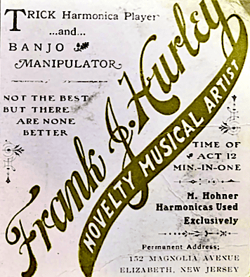 If you were interested in hiring Frank J. Hurley—a one-man band— for a musical engagement he could be contacted at 152 Magnolia Avenue, Elizabeth, New Jersey.