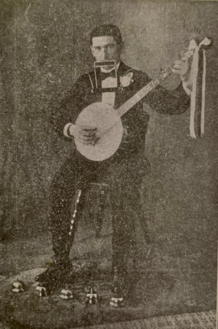 He added a boutonniere to his lapel. He carefully took his banjo out of its case. He adjusted the rack for his Hohner harmonica. And he positioned his bells on the floor. Now he was ready. After all, as a musical entertainer “he [was] not the best but there [were] none better”.