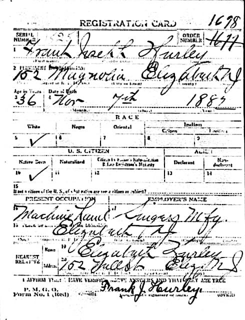 The clues come from the World War I and World War II draft cards for Frank J. Hurley.