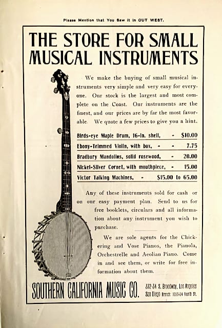 Print ad from 1904 for five-string banjo.