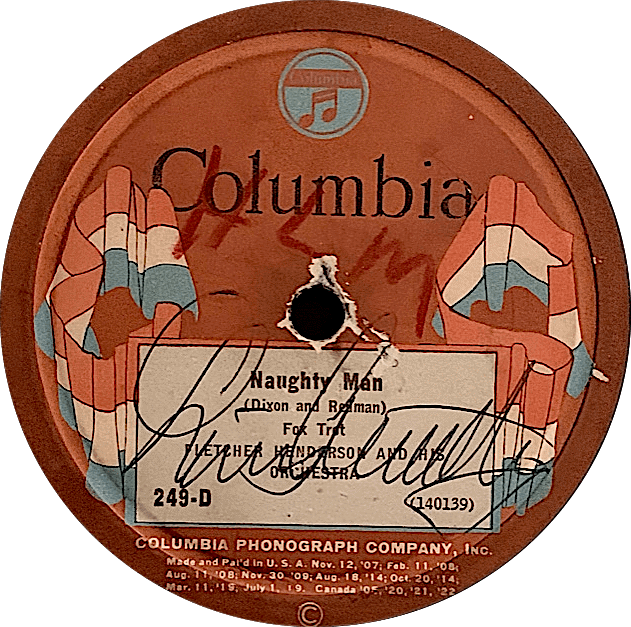 The Henderson [78] came from the collection of a friend, Dave Ski. Many of the jazz greats visited Cleveland in the late 40’s and early ‘50s. Louis had many friends here in Cleveland (I have some excellent candid color photos of him visiting here during that time) and came to town quite often. Dave was a young collector at the time. I believe Louis was at the Cleveland Boat Show (c. 1950) at the time. Dave approached Louis with the Henderson. Louis got a laugh out of it, and gladly signed the record for him. Dave thought it would be fun to have Bailey’s autograph on the reverse. Dave doesn’t remember what, if anything, Bailey had to say. Enjoy!