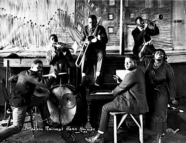 Luckily for us, an excellent local Breckenridge photographer, Basil Clemons (1887-1964), was on hand to photograph the Wortham show performers, including the thirty-six-year old Ma Rainey and her entertainers. The photo of Rainey and her band inside the tent is inscribed “Ma Rainey’s Jazz Hounds”, a common name for her backup musicians—although sometimes they morphed into her “Georgia Wildcat Band” or the “Wildcats Jazz Band”.